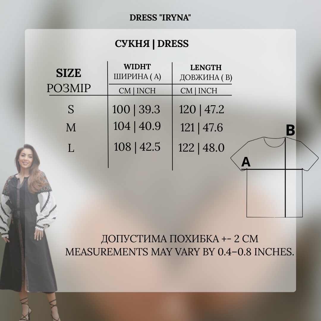 Išskirtinė juoda siuvinėta suknelė su etniniais motyvais – puikus pasirinkimas tiek ypatingoms progoms, tiek kasdieniam stilingam įvaizdžiui. Pūstos rankovės su kontrastinėmis siuvinėtomis detalėmis suteikia žavesio ir išskirtinumo. Pridedamas diržas pabrėžia liemenį ir kuria moterišką siluetą.