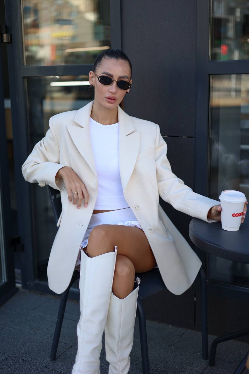 A luxurious coat-jacket that redefines versatile elegance 💫 The relaxed-fit design with a classic lapel collar effortlessly transitions from sophisticated office looks to casual weekend styling. Perfect for the modern woman who values both comfort and refined fashion ✨