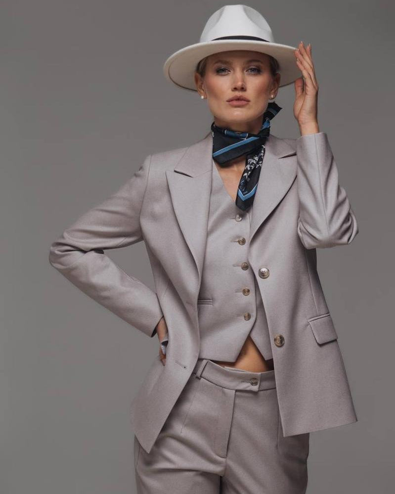 The "Doskonalist" light gray jacket is your go-to essential for creating effortlessly elegant looks—combining timeless tailoring with a rich, sophisticated tone.