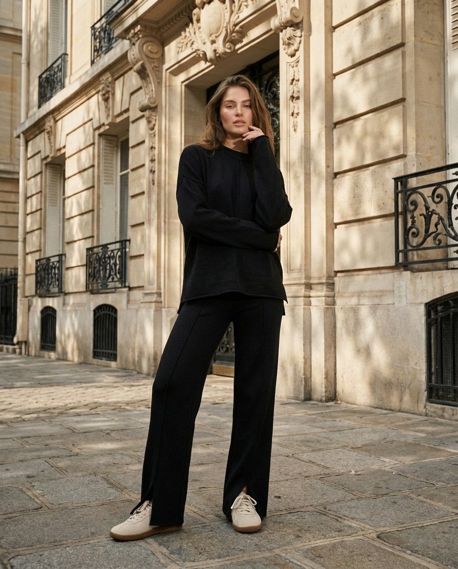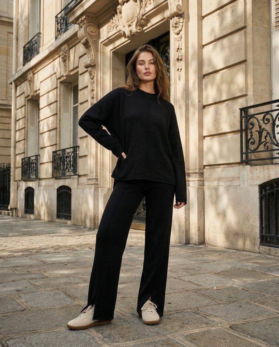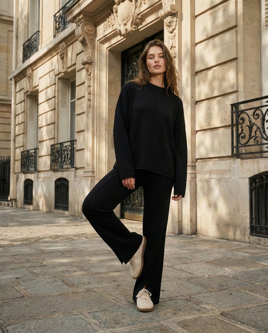 Moteriškas megztas komplektas – tai praktiškas pasirinkimas kasdieniam dėvėjimui vėsesniu metų laiku. Minkštas ir šiltas megztas audinys yra malonus odai, nevaržo judesių ir suteikia komfortą visą dieną. Komplektas puikiai tinka pasivaikščiojimams, kelionėms, neformaliai darbo aplinkai ir kasdienėms veikloms.