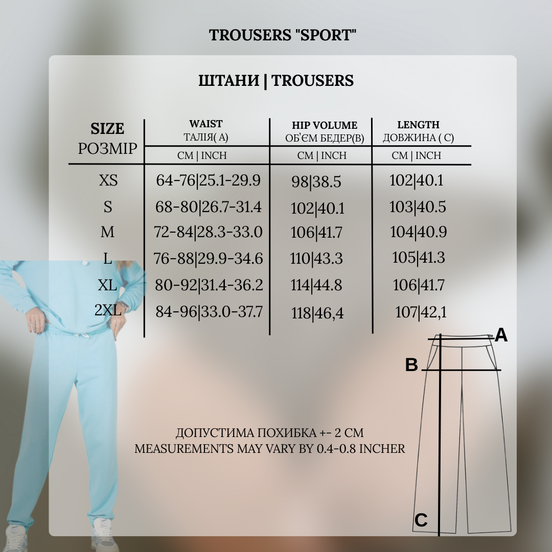 Išlaikykite komfortą ir stilių su „Sport“ kelnėmis gaivios šviesiai mėlynos spalvos. Pagamintos iš aukštos kokybės medvilnės, šios laisvalaikio kelnės puikiai tinka rudenį ir žiemą, užtikrinant šilumą, komfortą ir patvarumą.
