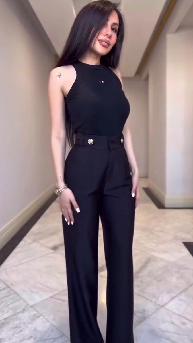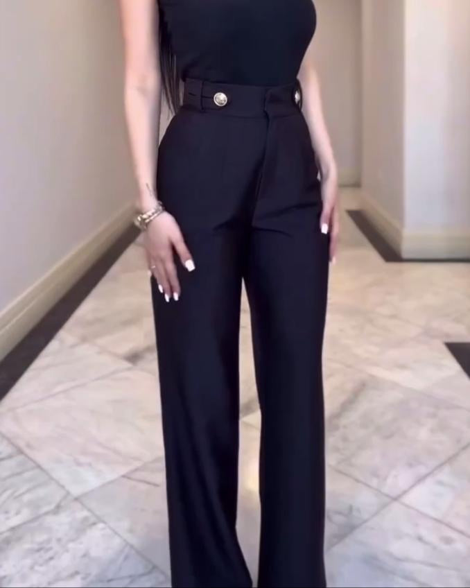 Classic black trousers designed to bring elegance and sophistication to your everyday wardrobe. Featuring decorative buttons and loops on the waistband, these trousers add a stylish accent while keeping a timeless silhouette.