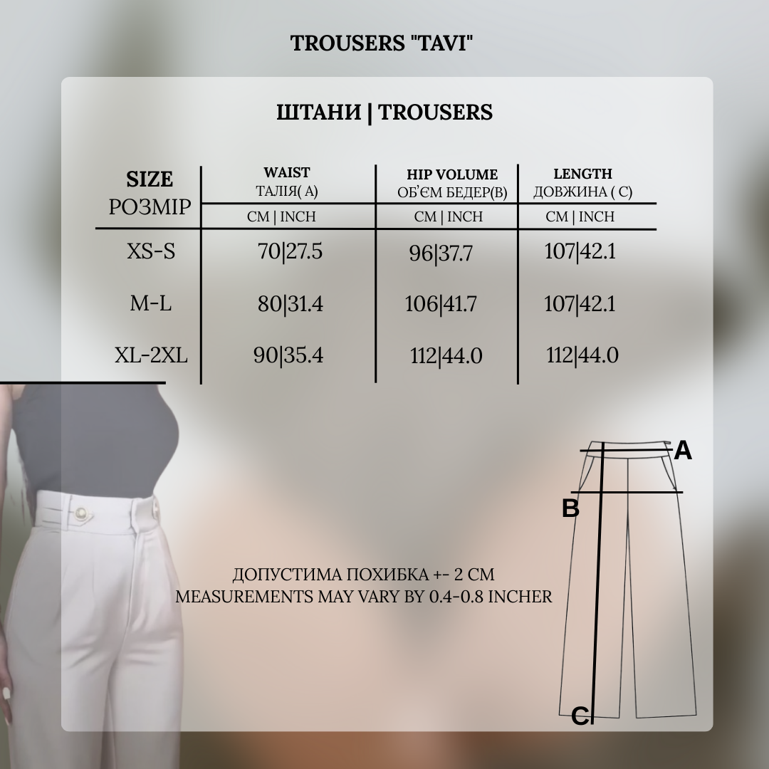 Pakelkite savo biuro ir kasdienį stilių į aukštesnį lygį – papildykite garderobą „Tavi“ kelnėmis elegantiškam ir rafinuotam įvaizdžiui.
